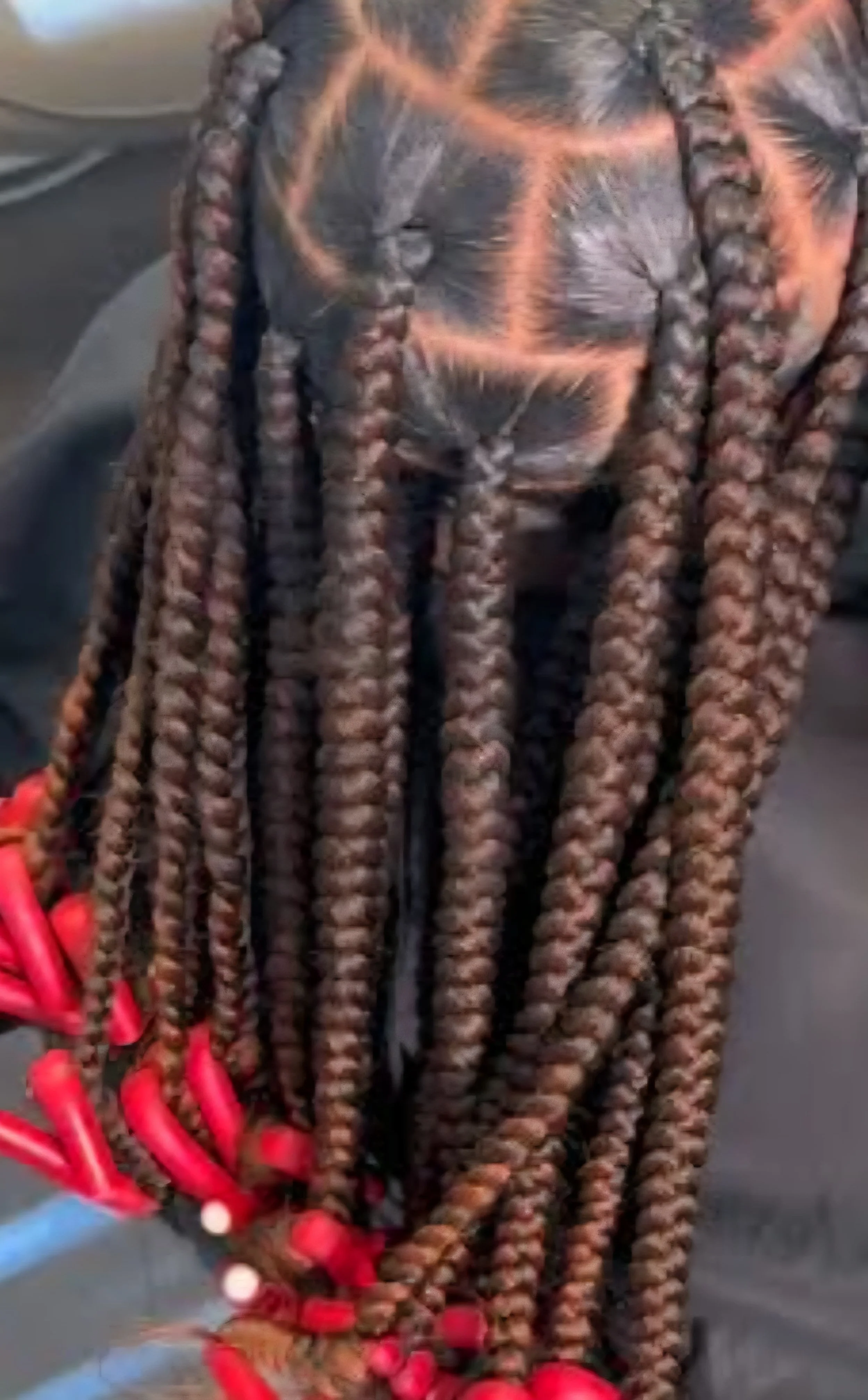 A modern and gentler version of traditional box braids, known for their natural look and comfortable feel. The key difference lies in how the braids start at the scalp—without the bulky knot.